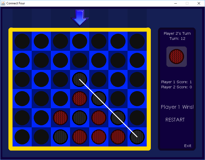 I also created Connect Four in Java, created similarily to my Tic-Tac-Toe game featured hand made graphics and interface elements. The most difficult part of coding this game was coding the check if a player has won.