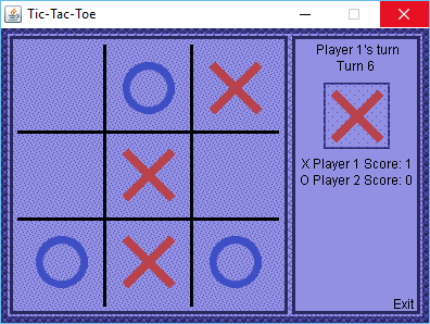 In my free time, for practice, I coded the classic game Tic-Tac-Toe in Java. It uses graphics and images I created for it to make the interface instead of using Java's provided elements such as JButtons.
